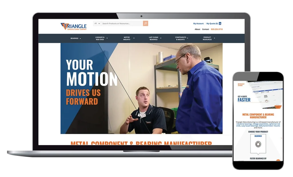 Triangle Manufacturing, a stamped metal component and mounted bearings manufacturer, keeps manufacturing industries moving forward. Their specialty: Engineering custom motion solutions for agriculture, display, HVAC, and lawn and garden OEMs. The company needed a web strategy agency to help build the brand messaging, online strategy, information architecture and product database that could move with their ever-expanding product line.